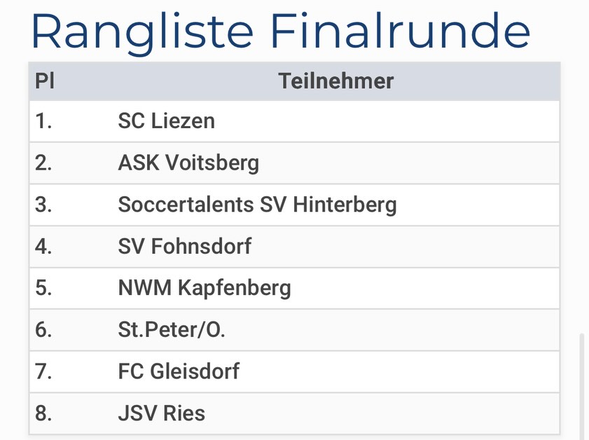 Gegen die 8 stärksten Mannschaften der Steiermark erreichten wir einen sehr respektablen 6. Platz. 👏⚽